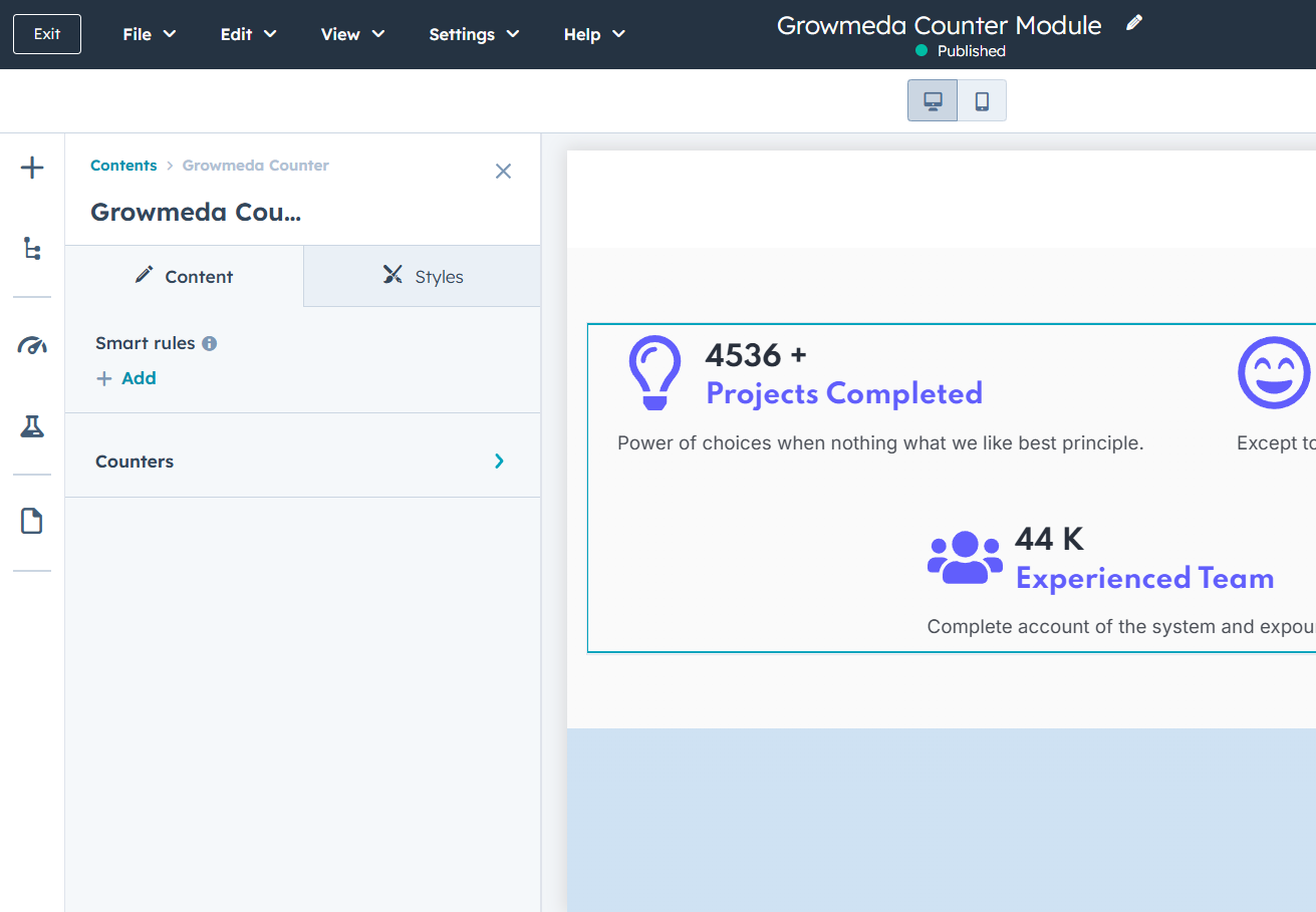 Preview: https://growmeda-4719755.hs-sites.com/growmeda-counter-module
