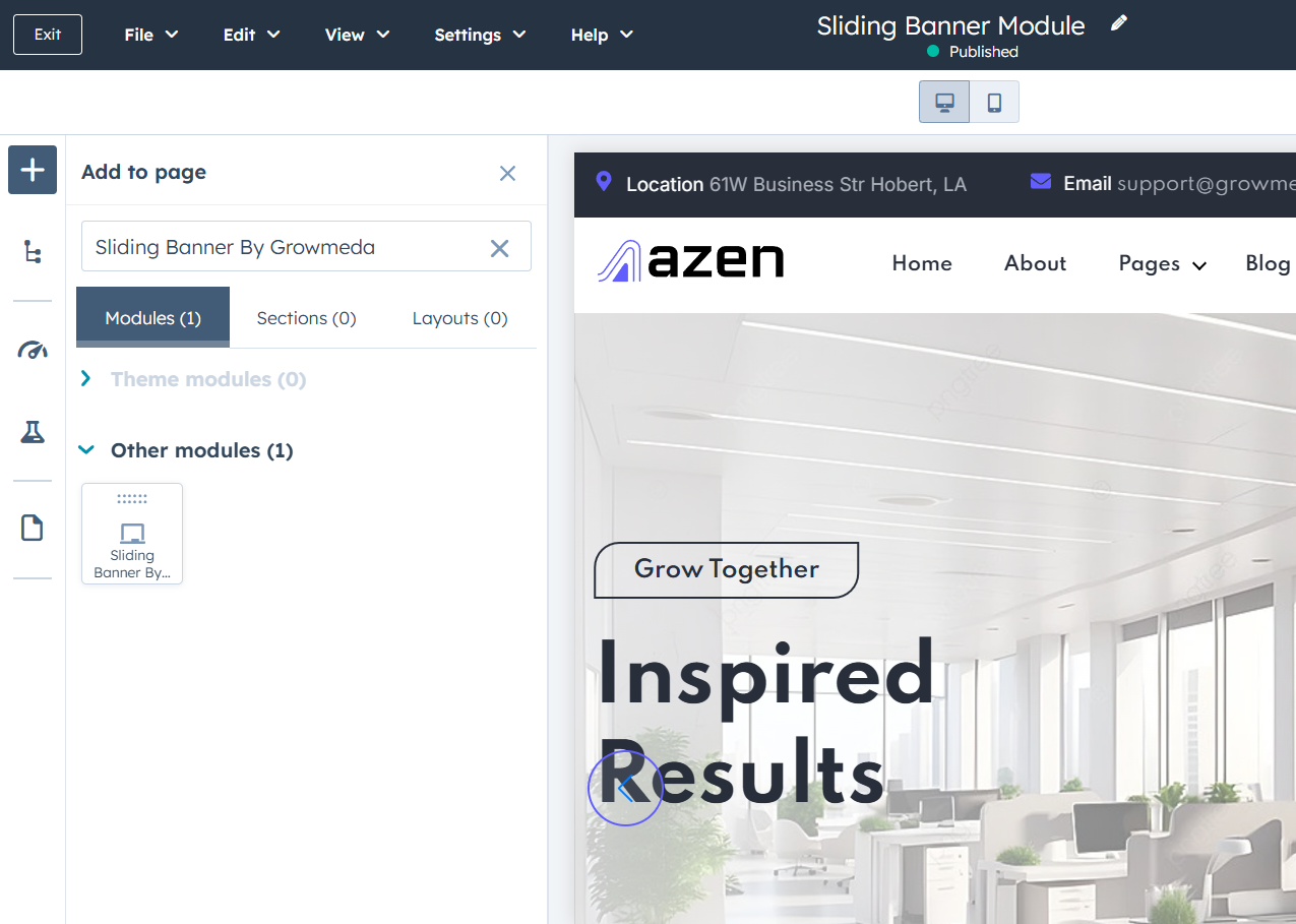 Search the name of the module then drag it anywhere on the page.